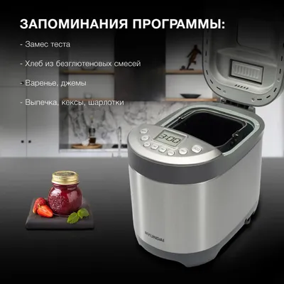 | Программы | безглютеновая выпечка, варенье, замес теста, йогурт, кекс, сладкая выпечка, французский багет, Безглютеновый хлеб, Бисквит, Быстрый хлеб, Выпечка, Дрожжевое тесто, Французский хлеб, Цельнозерновой хлеб, базовый, выпечка, перемешивание, рисовый, ручной режим, сладкий |