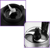 | Дополнительная информация | защита от включения со снятой чашей; чаша кофемолки 0,2 л; все ножи из нержавеющей стали; корпус нержавеющая сталь/пластик; емкость для блендера закрывается навинчивающейся крышкой для хранения и переноски смеси, на крышке есть ручка для переноски и отверстие для питья; количество терок в комплекте: 1; максимальная скорость вращения: 26000 об/мин; бутылка 600 мл |
