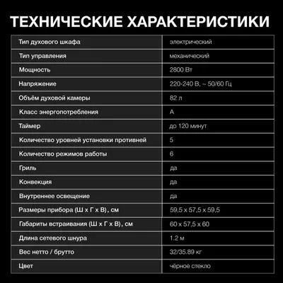 | Объём духового шкафа | 82 л |