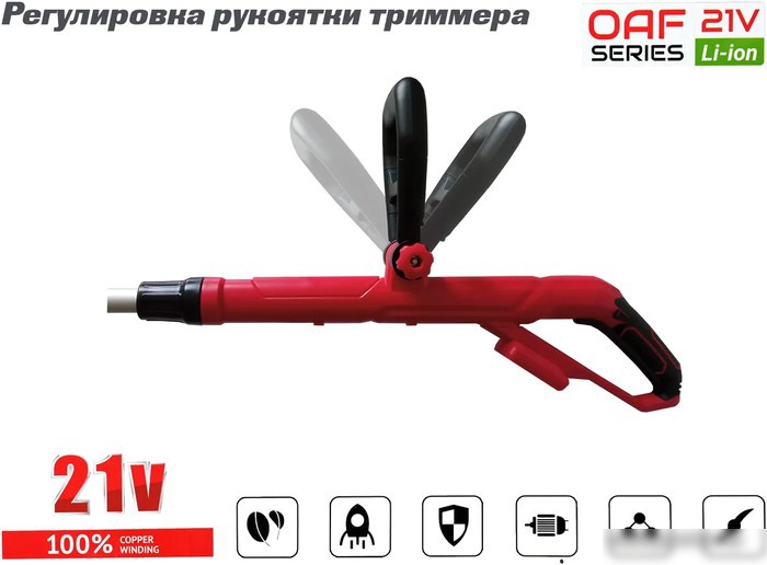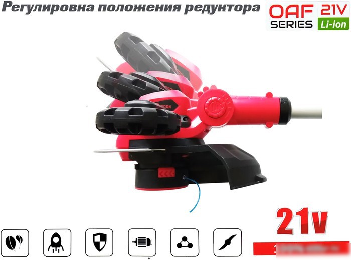 | Аксессуары | - Дополнительная рукоятка; - Направляющее колесо с кронштейном; - Защитный кожух; - Комплект крепежа; - Триммер аккумуляторный; - Катушка с леской; - Руководство. |