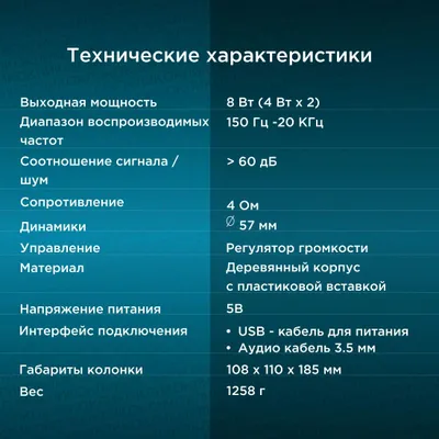 | Суммарная звуковая мощность | 8 Вт |