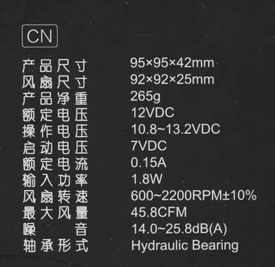 | Диаметр вентилятора | 92 мм |
