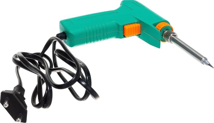 | Информация | Предназначен для ручного монтажа радиоэлементов. Он используется для пайки электродеталей в двух мощностных режимах: 30 и 130 Вт. Особенность данного инструмента заключается в том, что максимальная мощность и ускоренный разогрев активируются нажатием и удержанием курка. Это позволяет оператору сначала установить жало инструмента в определенную точку пайки, а затем нажатием кнопки на корпусе перевести паяльник в максимальный рабочий режим. Паяльник выполнен в форме пистолета с индикатором включения и имеет очень удобную эргономичную рукоятку из ударопрочного пластика. Характеризуется экономичным энергопотреблением. Удобен для распайки кабелей в шкафах, а также быстрых демонтажных работ. |