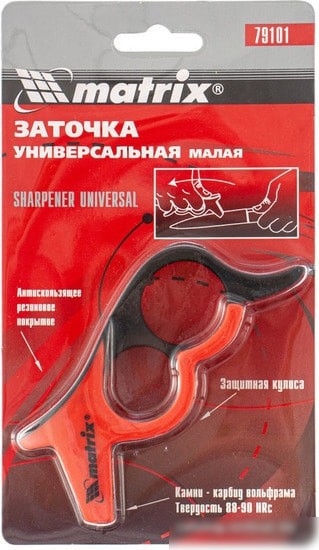 | Информация | Компактная и простая в эксплуатации, заточка универсальная малая быстро и качественно заточит ножи и другие режущие предметы (тесаки, резаки, косы и т. д.).Затачивание осуществляется путем легкого нажатия и перемещения точилки по лезвию ножа от рукоятки к острию.Для заточки ножа обычно требуется одно – два движения.Безопасность обеспечивается наличием антискользящего покрытия на внешней поверхности рукоятки и защитной кулисой.Удобна как для правшей, так и левшей. |