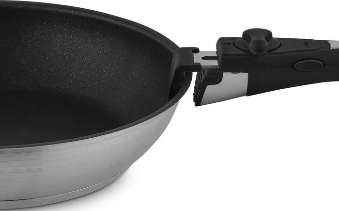 | Состав набора | - кастрюля без крышки 16 см (1,4 л), - кастрюля без крышки 20 см (2,8 л), - сковорода без крышки 26*5 см, - сковорода без крышки 28*5 см, - съемная ручка |